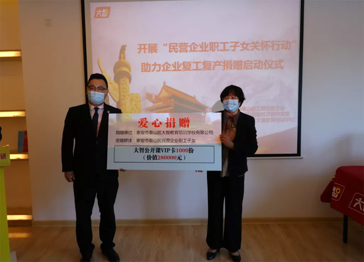 儀式上,大智泰安區(qū)域?yàn)樘┥絽^(qū)民營企業(yè)子女捐贈(zèng)價(jià)值28萬元大智公開課。張玲一行對(duì)此次捐贈(zèng)活動(dòng)給予了高度認(rèn)可,對(duì)大智的社會(huì)責(zé)任擔(dān)當(dāng)給予高度贊揚(yáng)。泰山區(qū)組織部、泰安市電視臺(tái)對(duì)活動(dòng)做專項(xiàng)報(bào)道。
