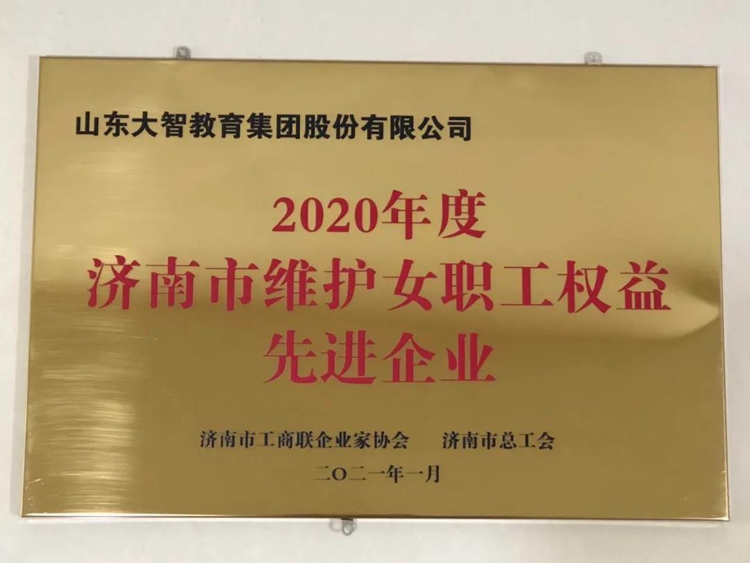 近日,大智教育集團榮獲濟南市工商聯(lián)企業(yè)家協(xié)會、濟南市總工會聯(lián)合頒發(fā)的2020年度濟南市維護女職工權(quán)益先進企業(yè)稱號。 大智工會自成