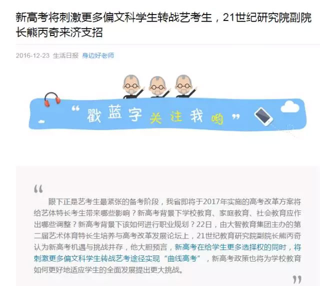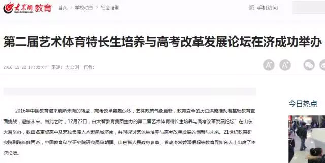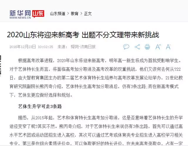 與此同時(shí),《濟(jì)南日?qǐng)?bào)》A10版以“新高考模式下,藝體生何去何從”為標(biāo)題,力挺論壇專家的觀點(diǎn)。