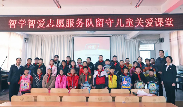 因?yàn)橛袗?,溫暖常在。大智教育集團(tuán)濟(jì)寧區(qū)域智學(xué)智愛服務(wù)隊(duì)給孩子們送去了書包等學(xué)習(xí)物品,并和孩子們親切互動(dòng),鼓勵(lì)他們要好好學(xué)習(xí)。